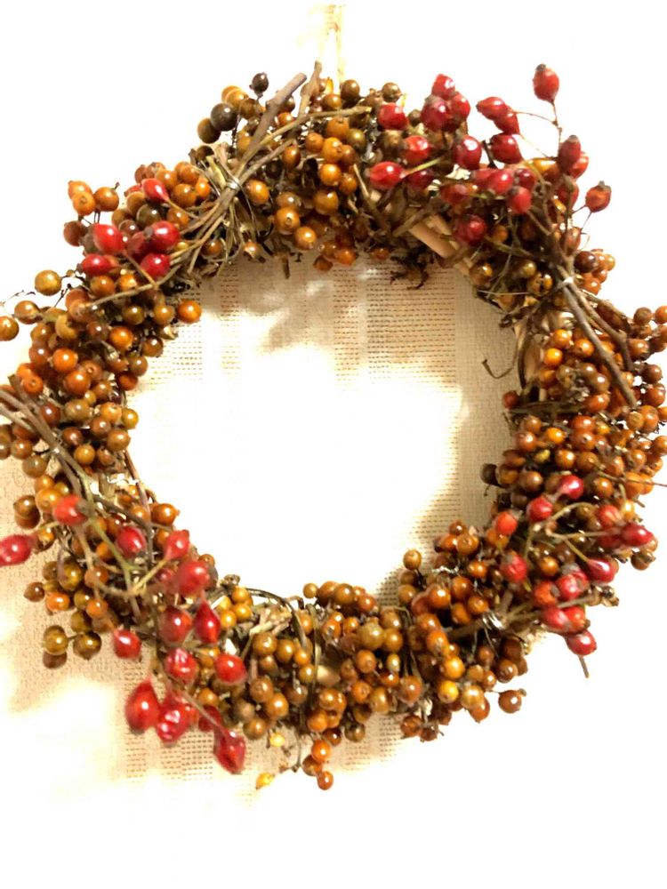 秋は、実が鶯色から黄金色に変化して、綺麗です。今回は実をリースにしてみました。