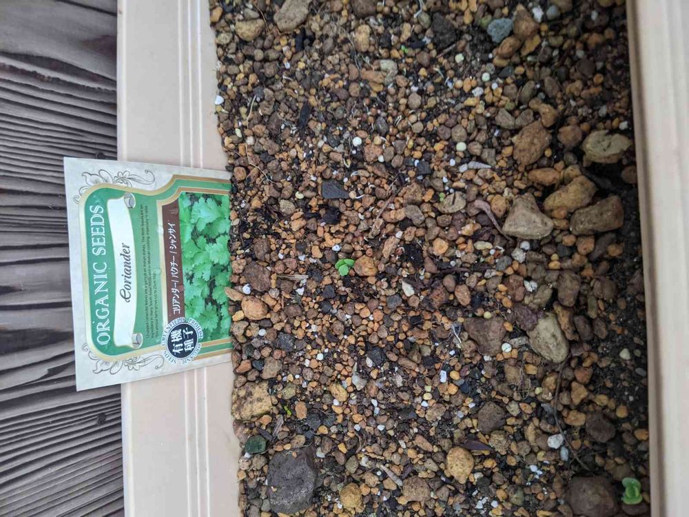 先日の開花園さんより頂いた花の種は、全部蒔きました。コチラは、パクチーです。子宝草が、育っていた、コンテナ利用しました。🤗