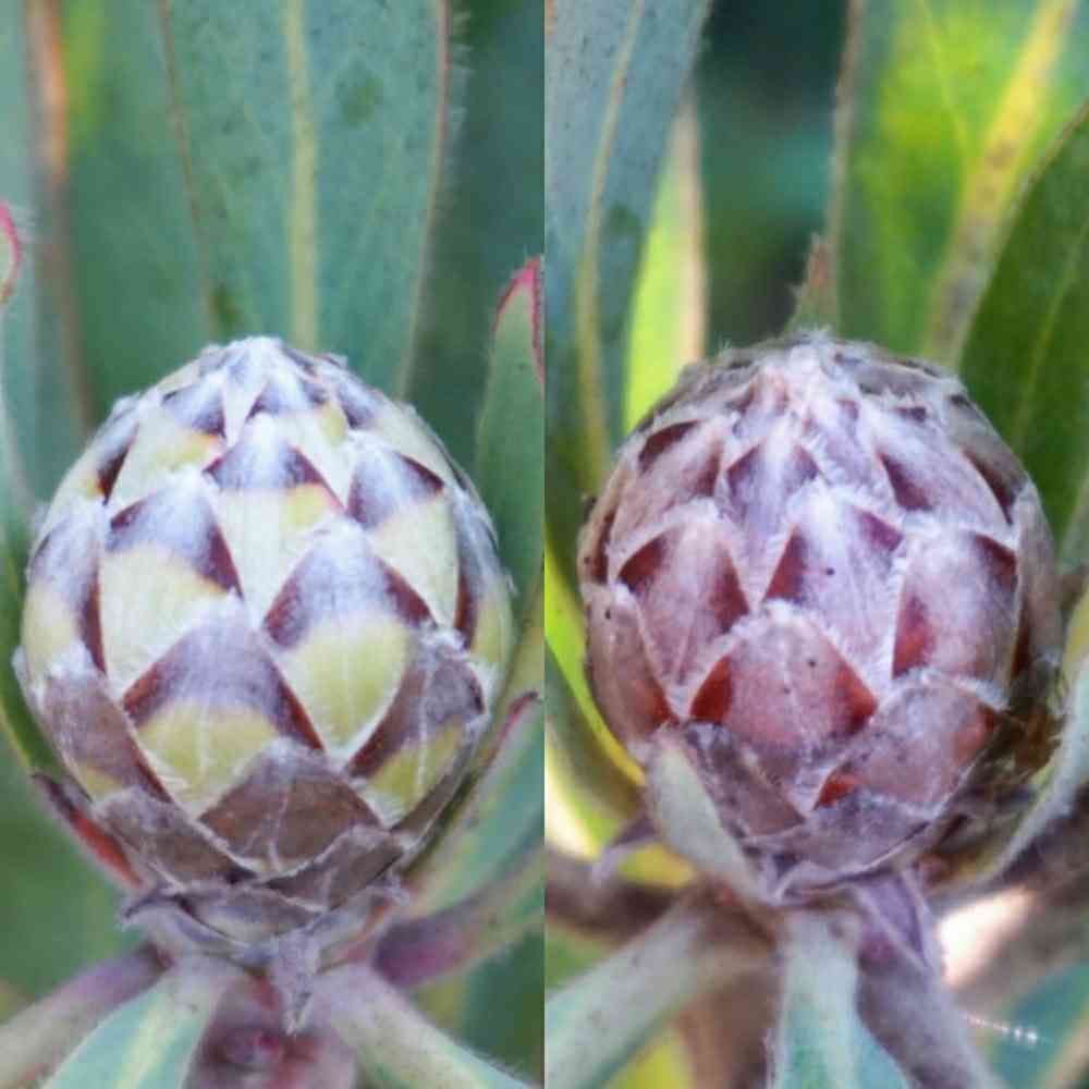 筒形の花が咲くプロテアは、だいたい丸く花芽が付いてから、縦に伸びてきます♪😊