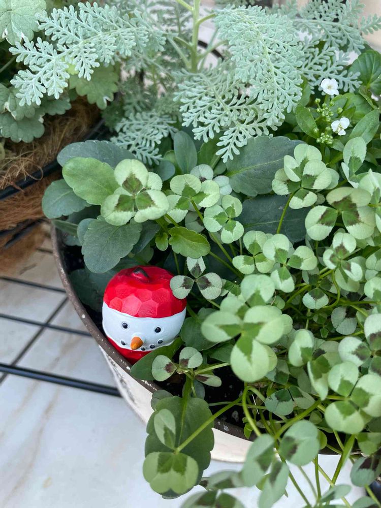こちらも同じく10/31にupしたビオラの寄せ植え。こちらにはりんごから顔を出したスノーマン💕まだ他にも2種類の可愛いコちゃんをセリアでゲットしたのでまたそのうち登場♡ビオラがもりもりになったら埋もれそう、、、