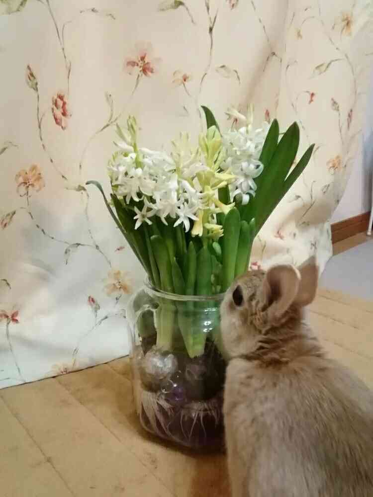 ヒヤシンスの写真を撮ろうとしたら家のウサギが乱入