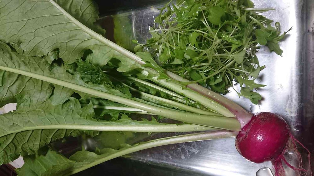 水菜の間引き菜を使い忘れたから明日にでも使わないと😅