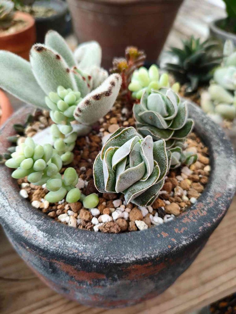 植えたばかりの多肉寄せ植え
