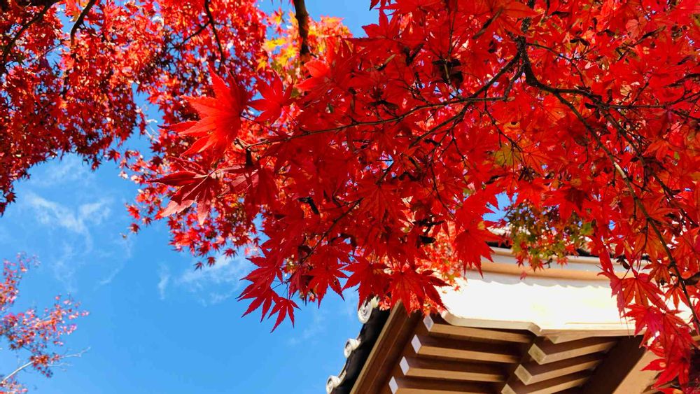 紅葉が青空に映えてます。