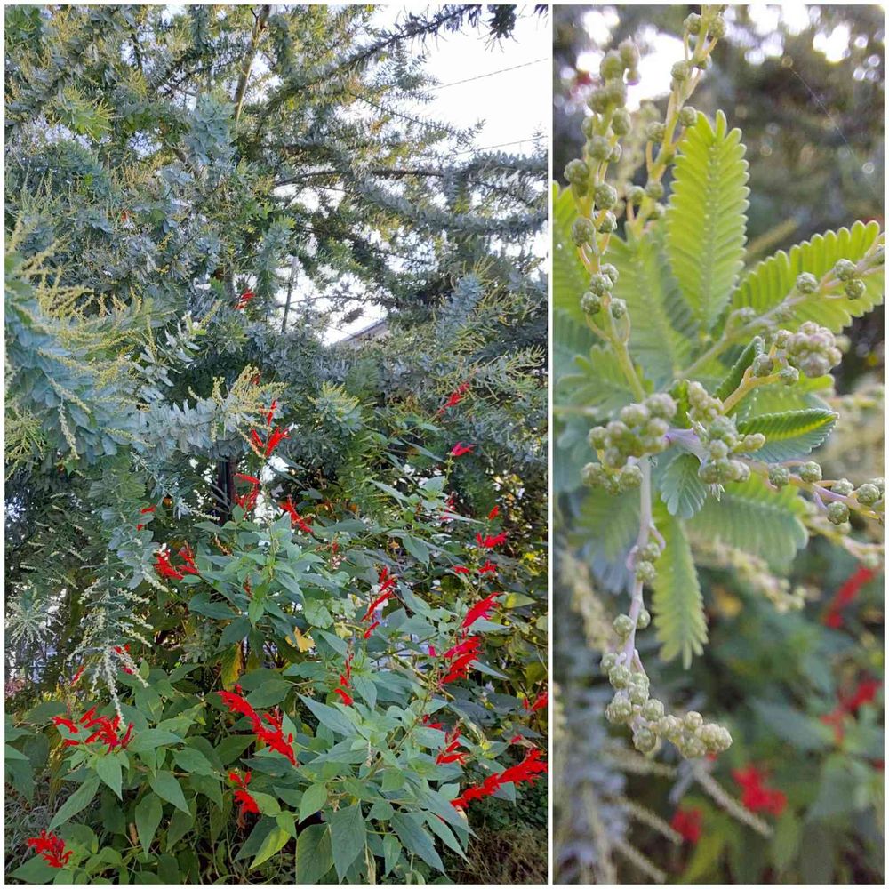 パープルさんの広い庭,パイナップルセージ,ミモザ(ギンヨウアカシア)の投稿画像