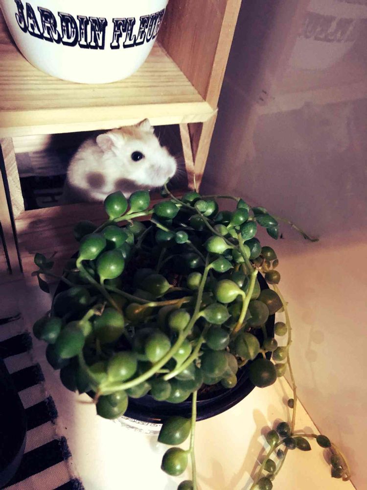 うちはデグーを飼ってますがハムちゃんみたいに部屋ん歩させたら間違いなく多肉食物達がかじられちゃうよ😅