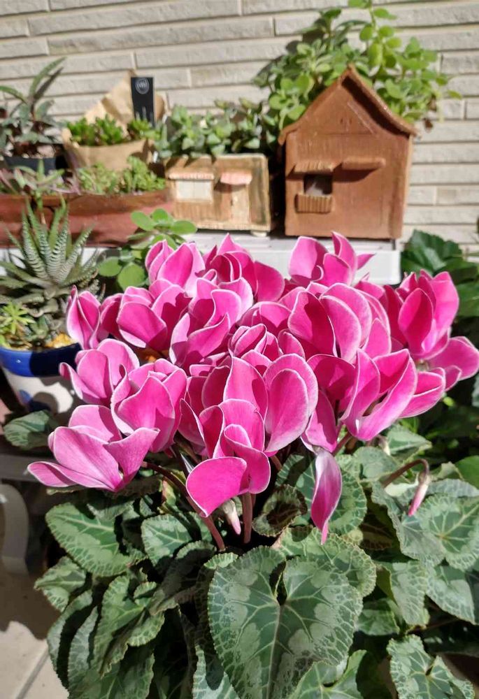 うちの🌺🌿ガーデンシクラメンも、夏越しして葉っぱツヤツヤ、健気に小さな花いっぱい咲かせてますよ🥰✌️🎶💕
