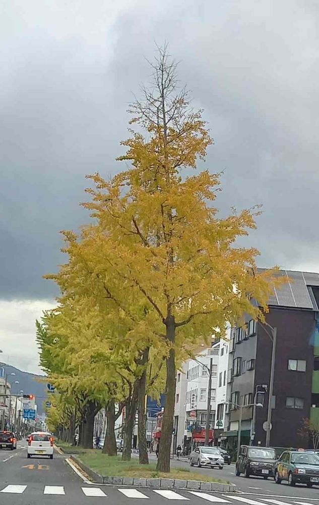 出かけ先で この通りは何キロにも続く並木ですが 交通量が多くイチョウの葉っぱが散る頃は通りの家の人達は