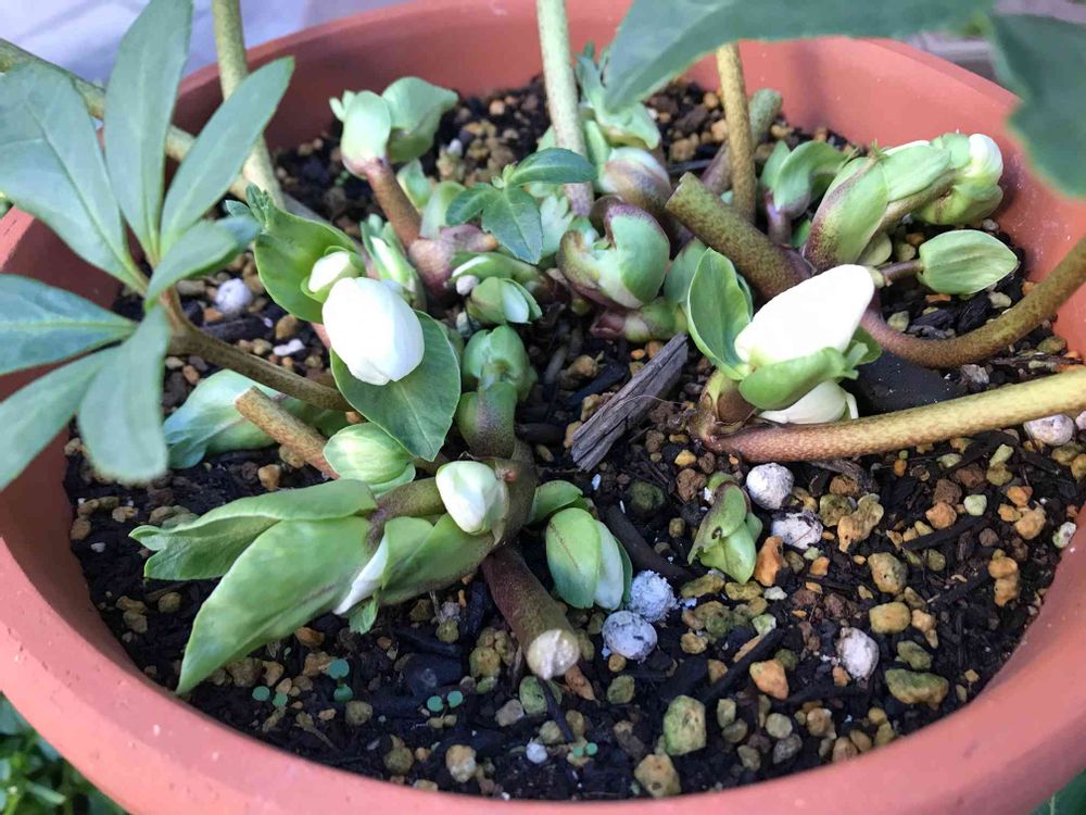 蕾がたくさん!今年も花首が短いとお見受けします。植え替えていないからかな…