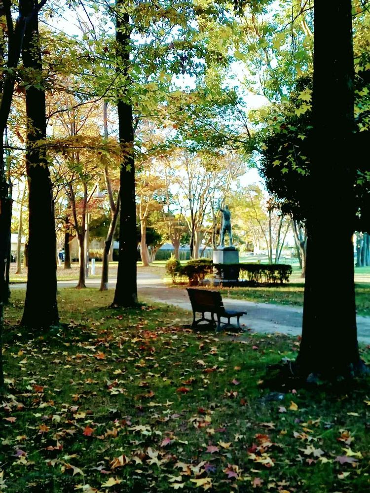 モミジバフウの落ち葉舞う林で、カラフルな葉っぱ🍁が絨毯の様です。