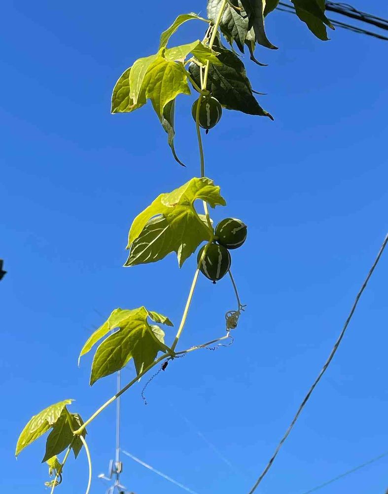 これがからんでいるエゴノキはもうすぐ葉が落ちそうなのに、このオキナワスズメウリだけ青々しいまま😅