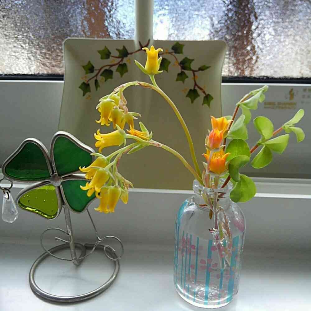 昨夜カットして水に挿してみた時、多肉の花だから明日の朝どうなってるかな~💓って心配したけど、大丈夫でした😉