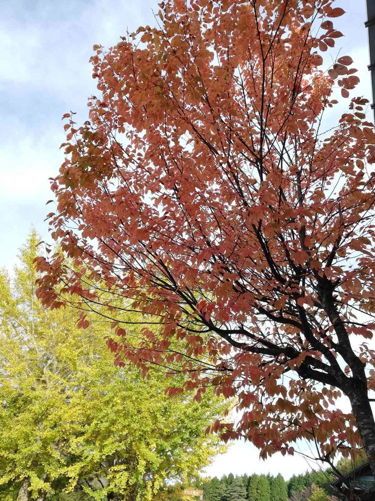 モリモリの銀杏の黄色💛と紅葉の木🍁一緒に育って仲良しですね😌