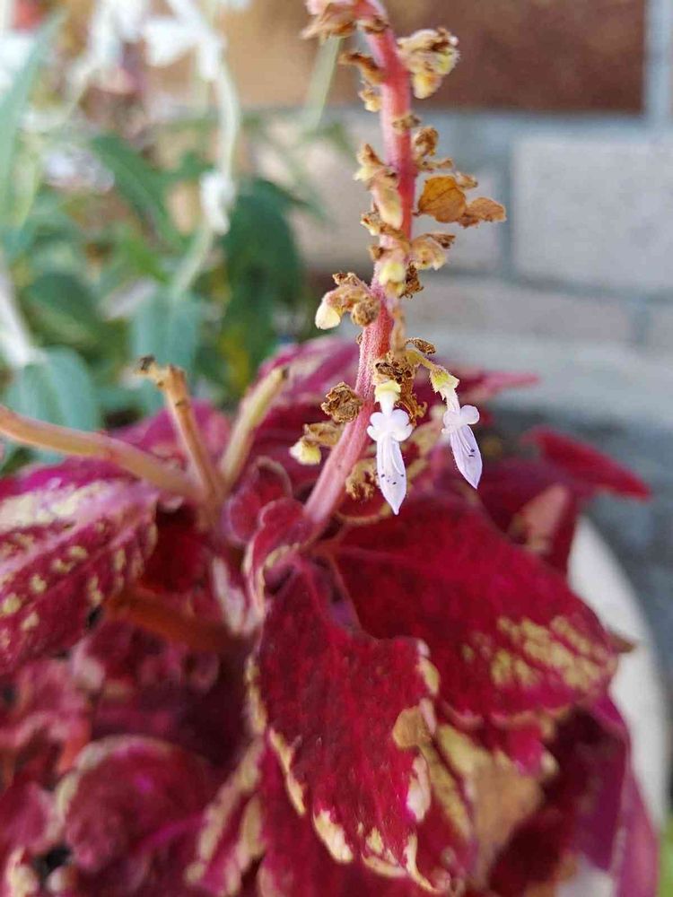 終わりかけた🍂コリウスに小さな可愛いお花が咲いて😍💓妖精の様🧚🧚🎶