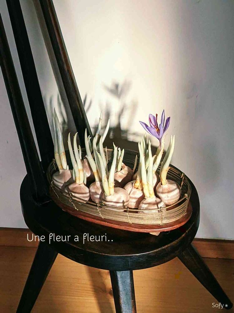 綺麗に並んだサフランから伸びる力強い芽が印象的ですね🎵