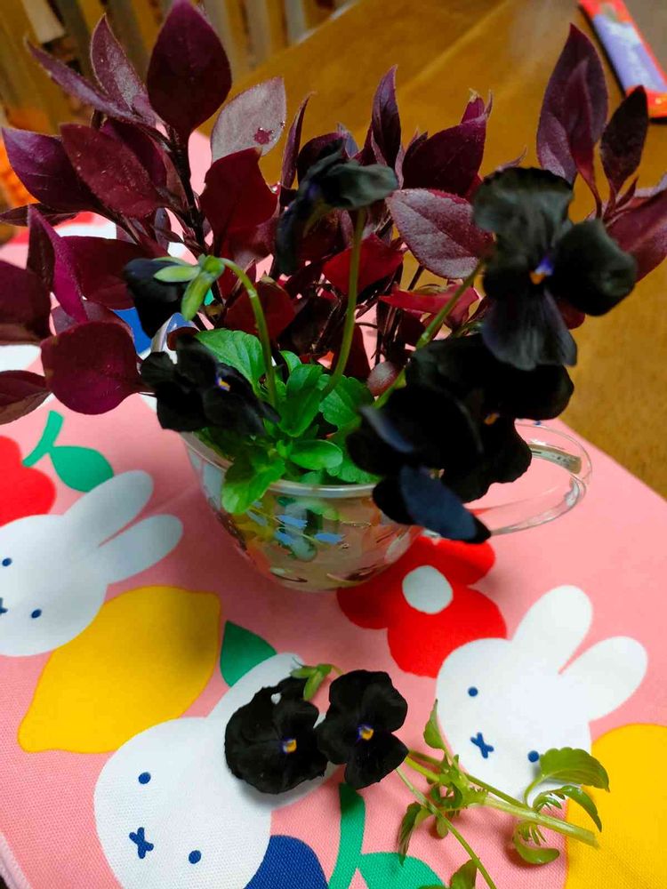 キッチン,ビオラ・パンジー,黒い花の投稿画像
