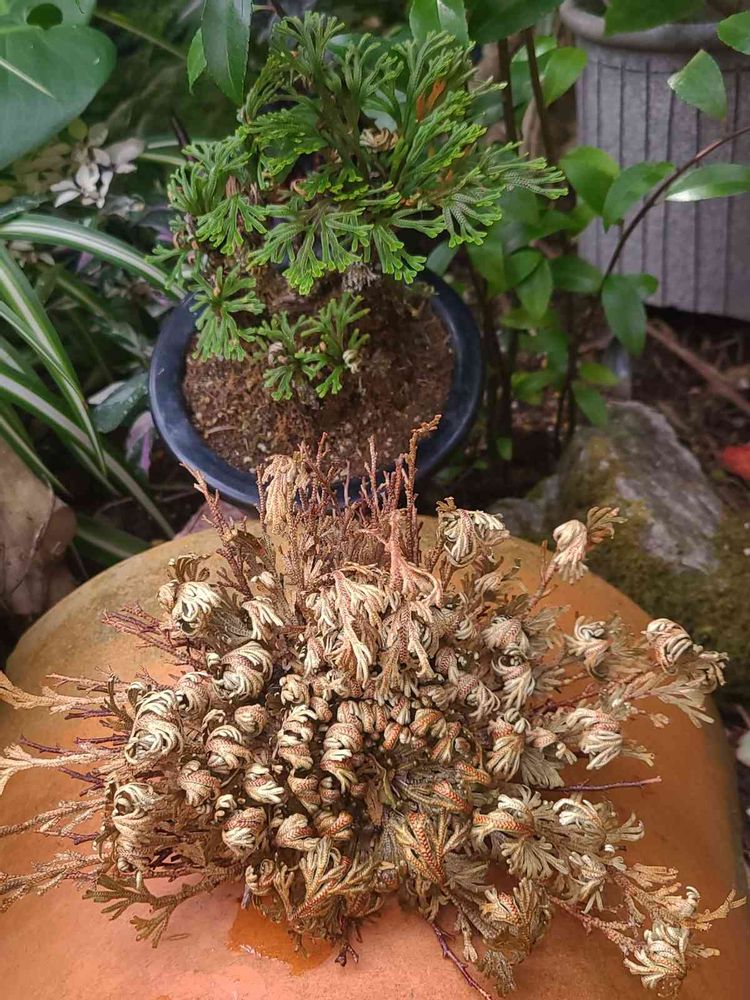 小さな庭,友情出演のイワヒバさん,3時間前に水につけられたテマリカタヒバの投稿画像