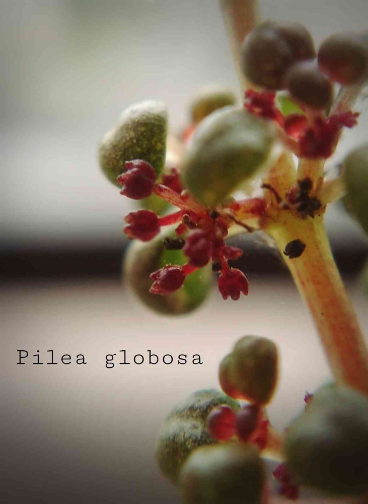 ピレアグロボーサの花が、赤く小さく咲いています。花火みたいに、パアッとひらいて、たくさん咲いてくれます。