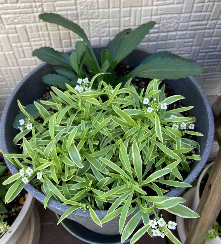 スーパーアリッサム・フロスティーナイトが鉢からあふれ出ています!