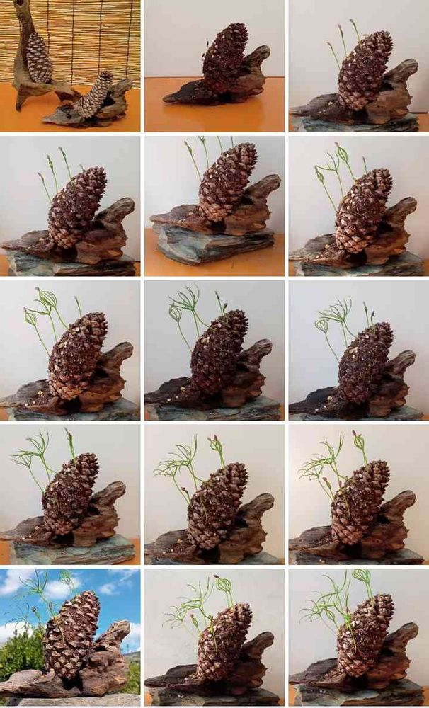 鶴 亀と見立てた松笠盆栽ですが大地から目覚めたゴジラとガメラのほうがしっくりくるかも 映画館で立ち見しながら見た映画 今でもあの頃の興奮は忘れられません。🤗