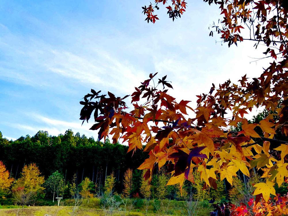 薄雲の青空💙からの~紅葉のグラデーションがキレイ✨過ぎるぅ~😆💛🧡💖
