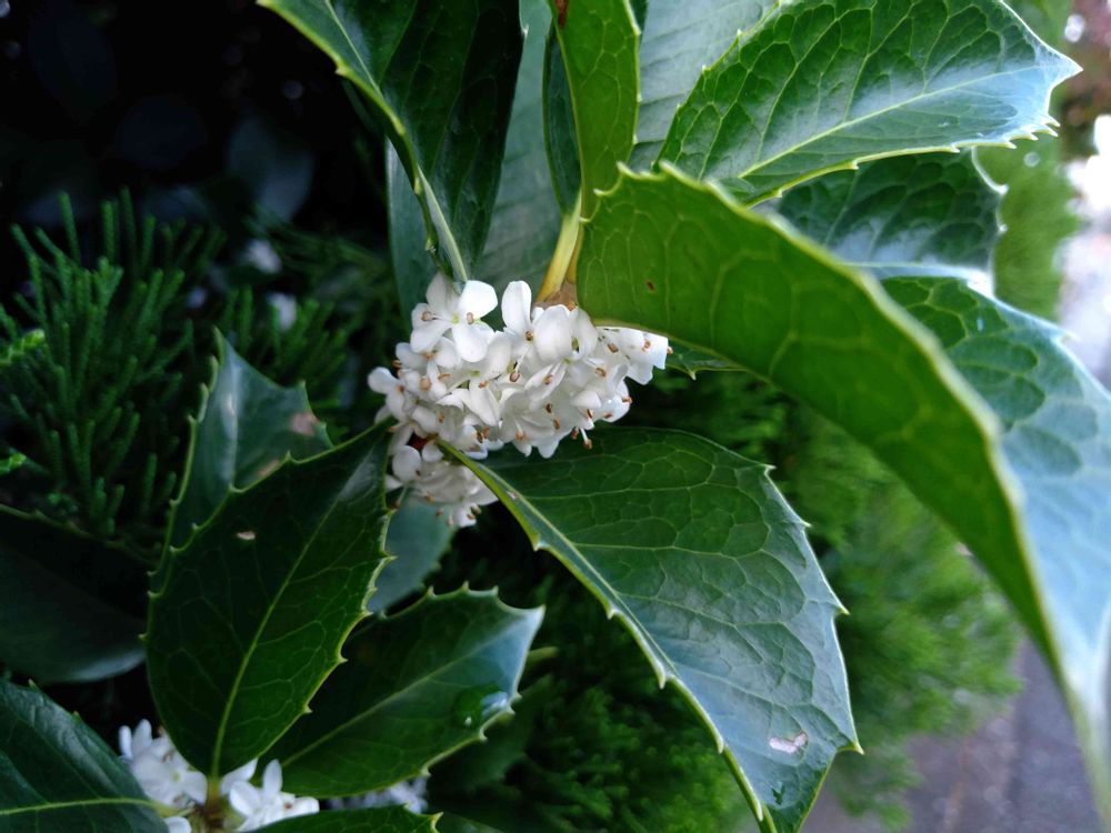 葉っぱは、南天みたいなんだけど、可愛い白い花が。これ、なあに。