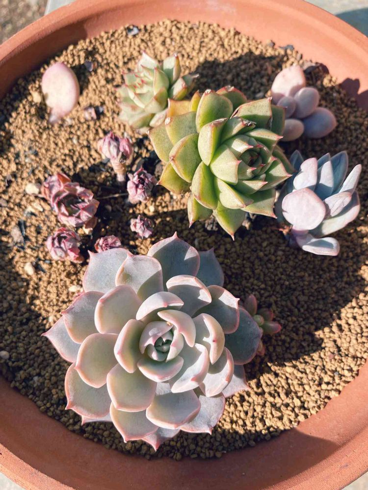 我が家の単品植えだったエケベリアetcたち、根っこがぱんぱんだったので取り敢えずひとまとめにしてみました😅