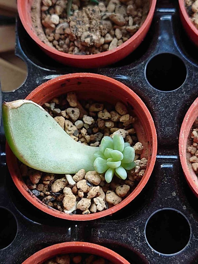 うっかり春に葉焼けさせてしまったグリムワン…ダメ元で焼けた葉を葉挿ししたら可愛らしいベビちゃんが💕😆