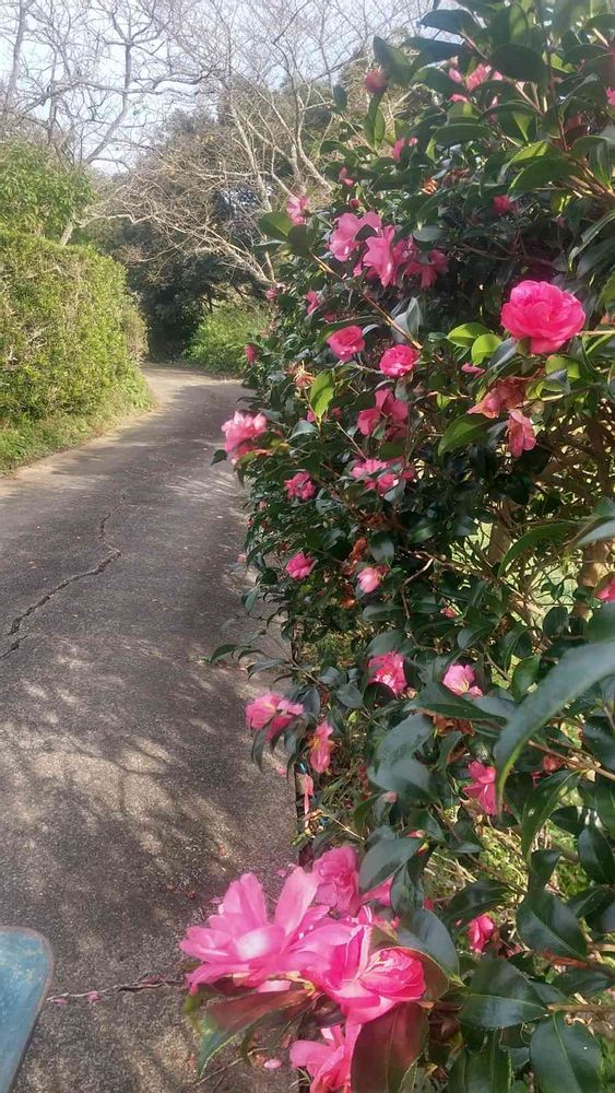 南の斜面を目隠したアプローチの山茶花生け垣🌿🌺🌸❇️🌺🌸🌿🌺🌸❇️🌺🌸🌿