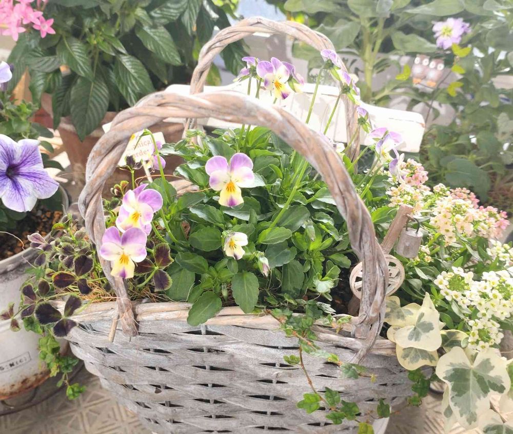 カゴ寄せは初めて&寄せ植え自体苦手意識が強いのですが、見よう見まねでやってみました😅ゼーゼー