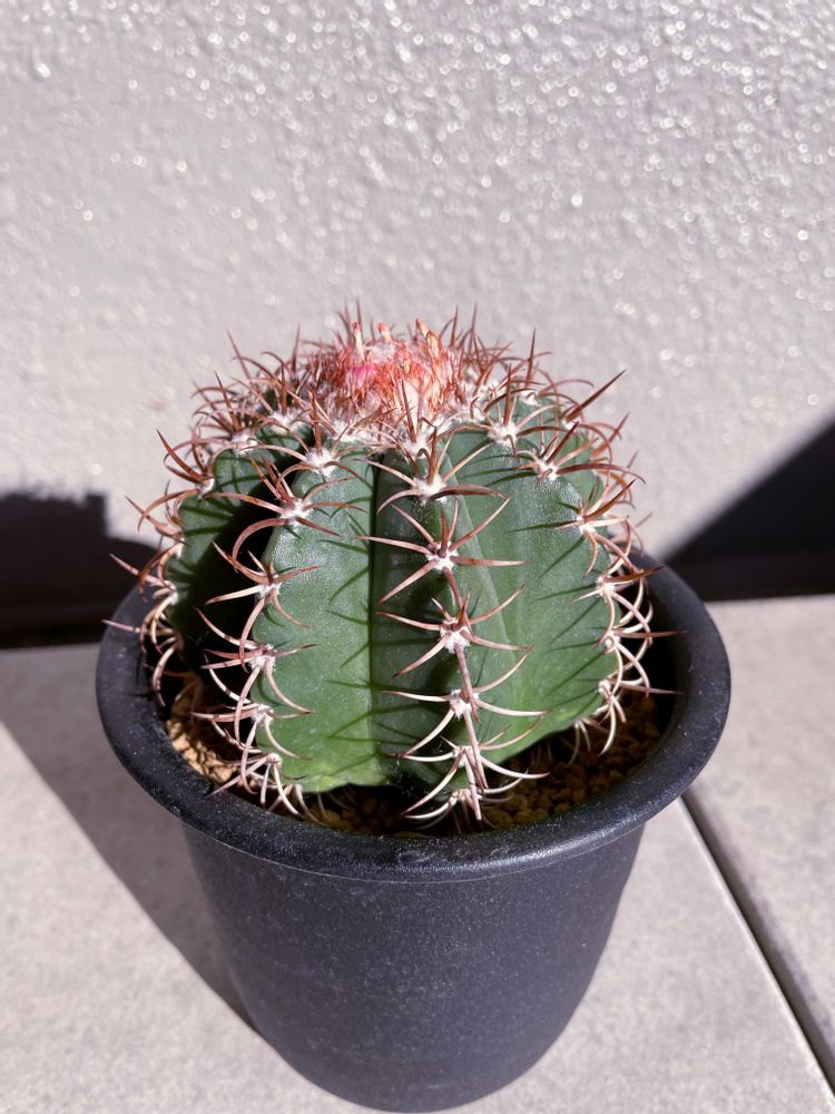 あの、頭に赤い帽子を被ったサボテンの子供の様です。頭頂の赤いのが帽子に育って行くらしい。楽しみ·͜· ❤︎