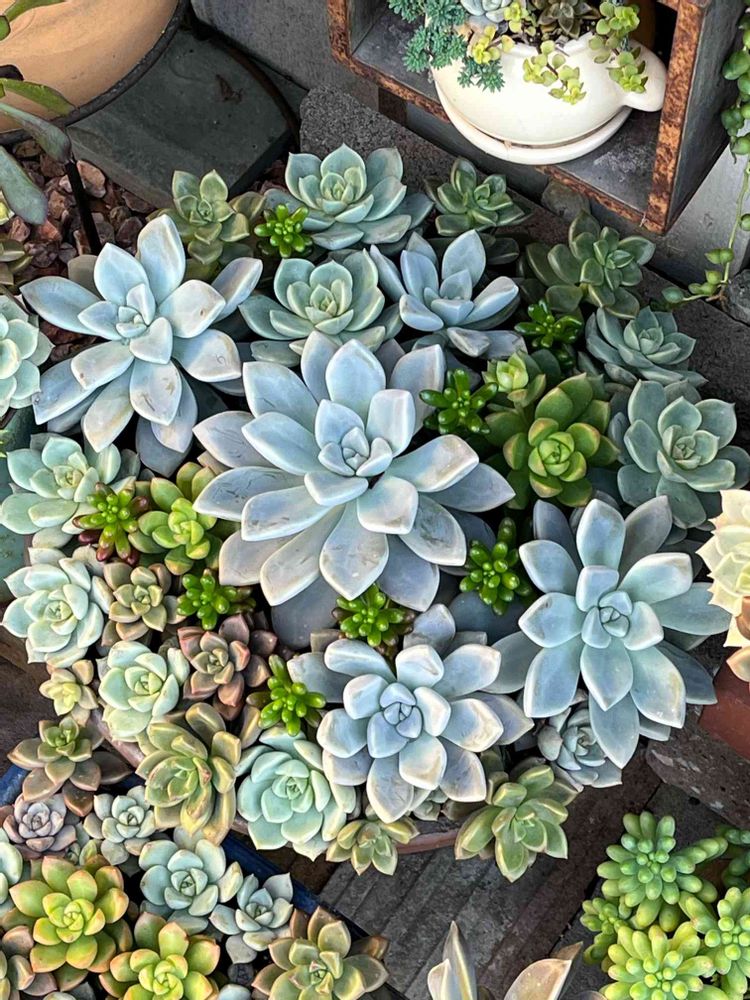 9月の終わりに仕立て直した大鉢の多肉がしっかり根付きモリモリ元気です😊