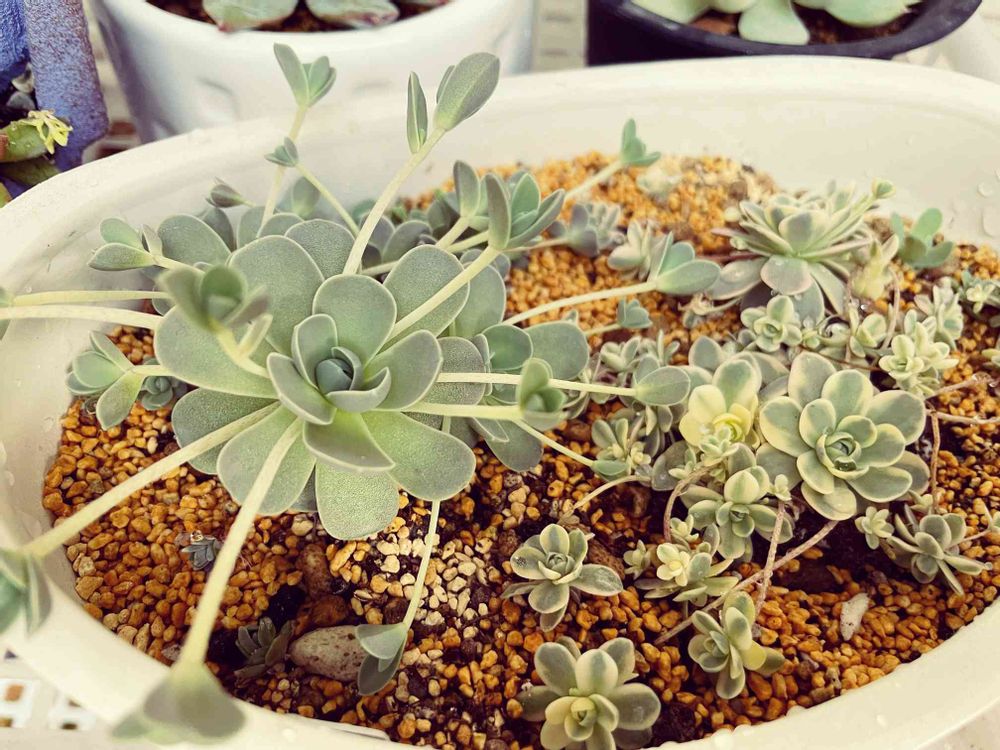子持ち蓮華さんが錦さんを飲み込みそうなので明日植え替えます😭