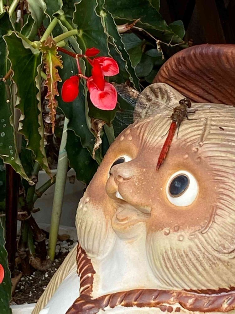 そうなんですよ〜偶然にも良い所に赤とんぼ…タヌキちゃん見とれてますね❣️❣️👍