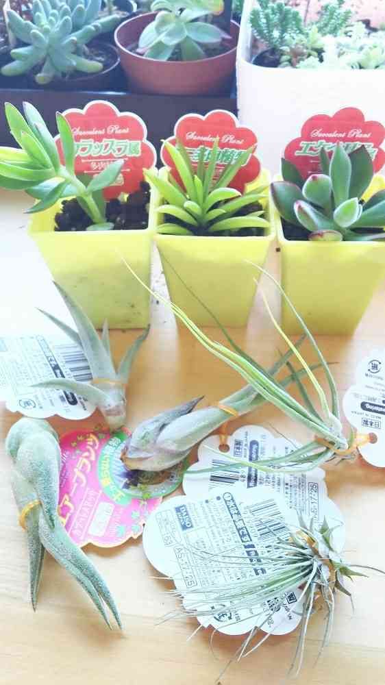 エアプランツ右側はシーディアナかな、花芽が付いてますよ😊