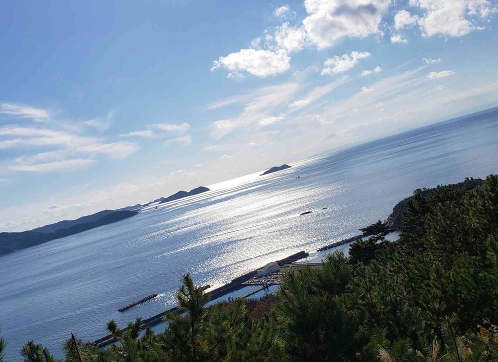 先日、ムラサキセンブリを見た山から見た、浜名湖以来の海です。