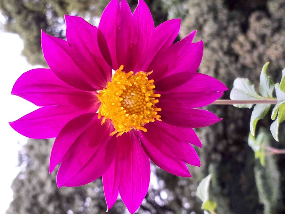 背景のモノトーンに鮮やかなピンクのダリア💖