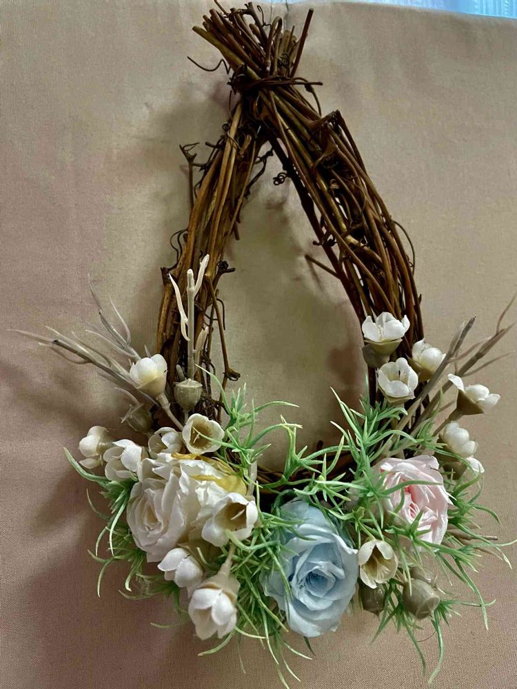 以前買っていた100均で雫型リース台とプリザーブドのバラ🌹