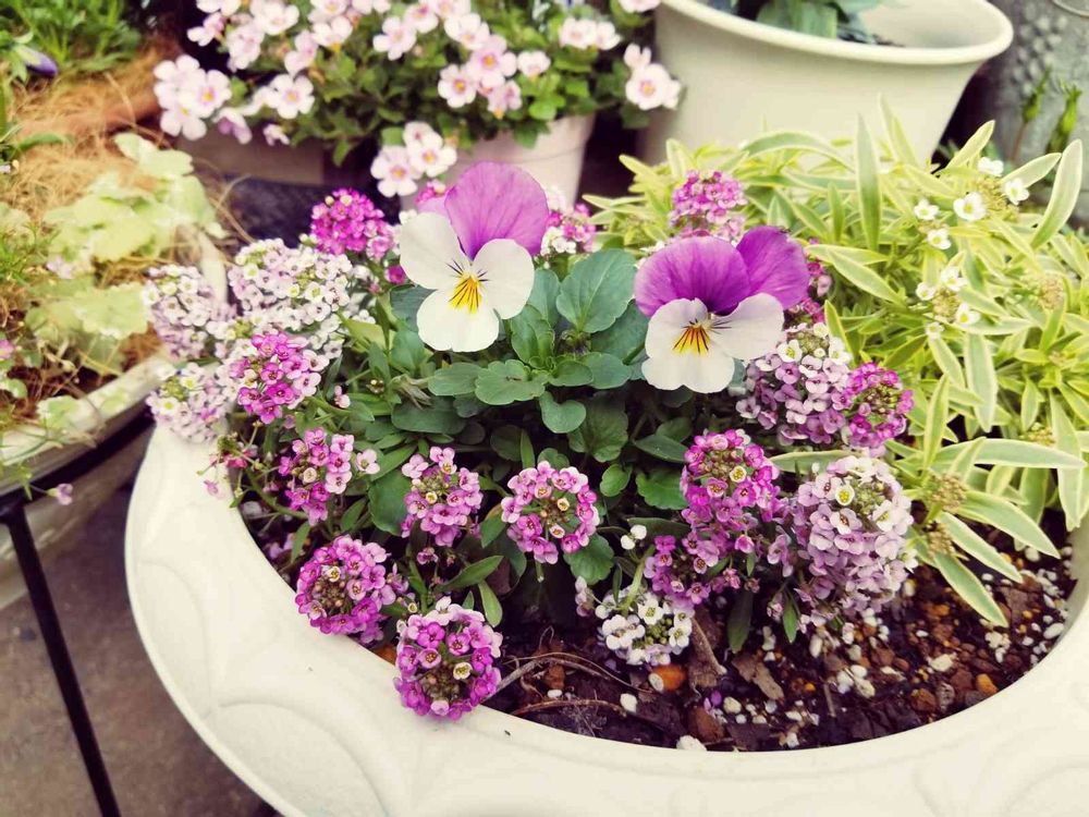 ビオラと色つきのアリッサムが入ると可愛くて華やかになりますね🥰