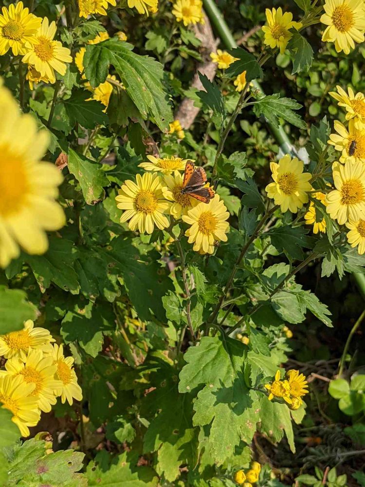 菊の花にも、蜜があるのかなぁ?美味しそうに食べてますね。人間様も食べれたら、菊の花大量にあるから、満足するのにナァ〜😂🤔😋😚🥳💐