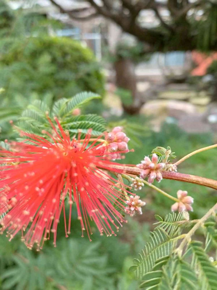 こんばんは、見ていただけて嬉しいです😀ひねむと、言うそうです。ねむの木の仲間。白もあるけどまだつぼみです😅