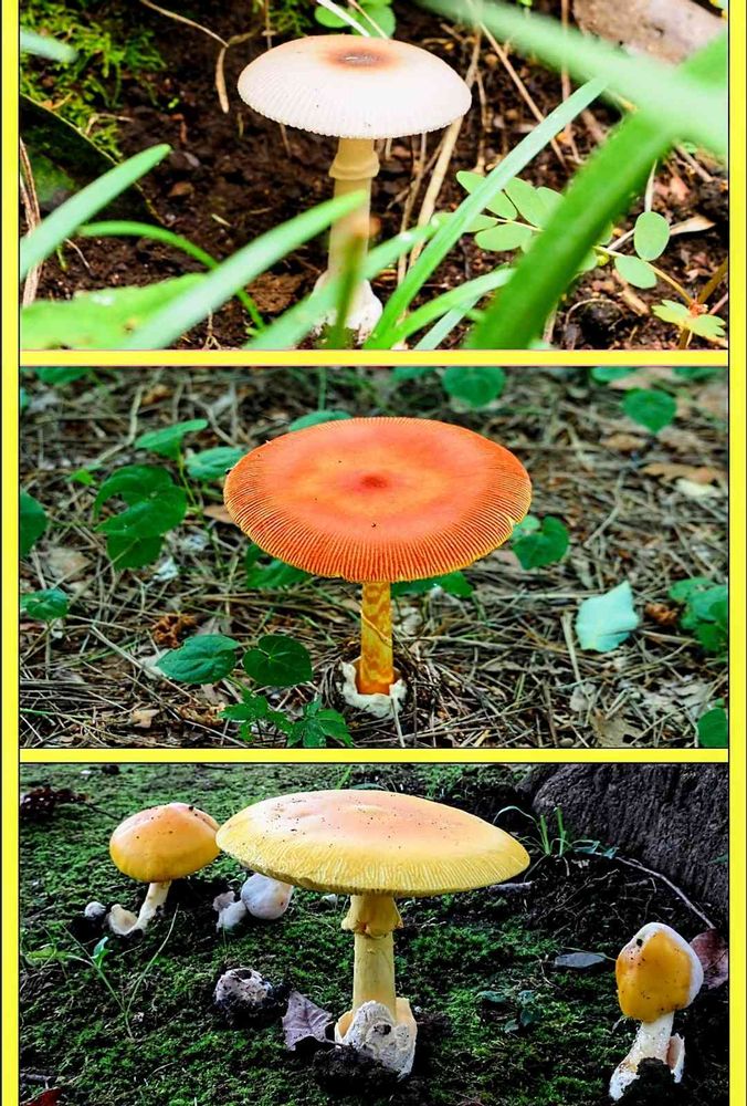 タマゴタケ三兄弟🍄🍄🍄。一番上が長男、二番目が次男、三番目が三男かしら。面白いです🤭。