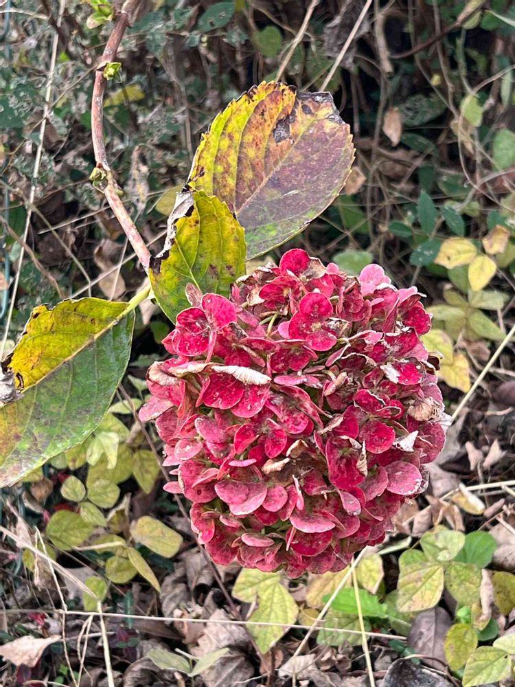 そうなんです、赤いアジサイ珍しいなーと思って思わず撮影しました。