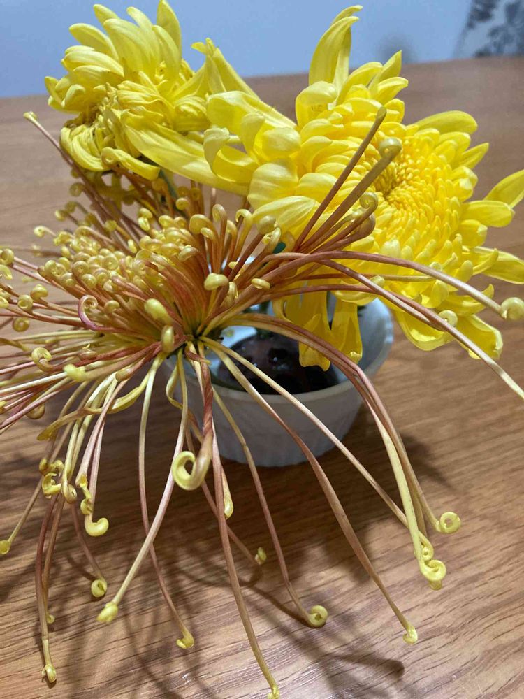 みかも焼小樽窯さんの陶製穴あき剣山を買ってみたので、早速あり合わせの器に菊を生けてみました。