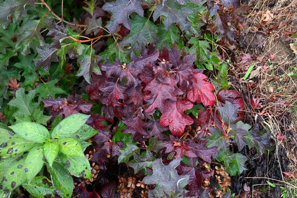 紅葉のカシワバアジサイ