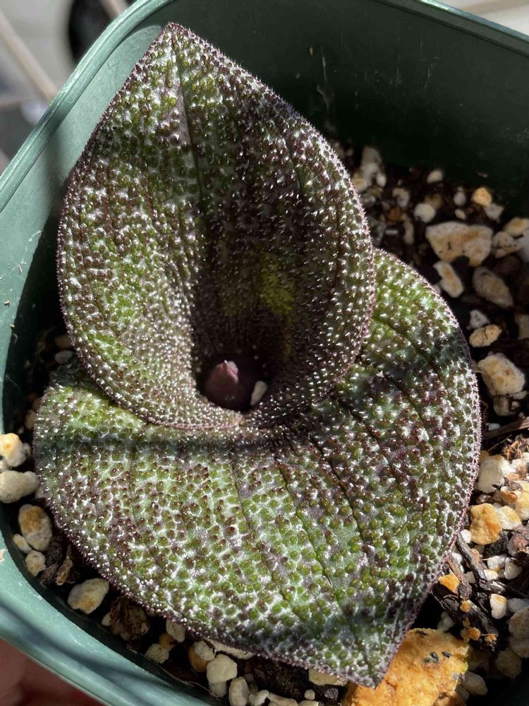 10月半ばに芽を出したマッソニア💜もう花芽を付けました。°○。* マッソニアの葉は2枚しか展開しません。。。なんだかとても急いでるね 🤫