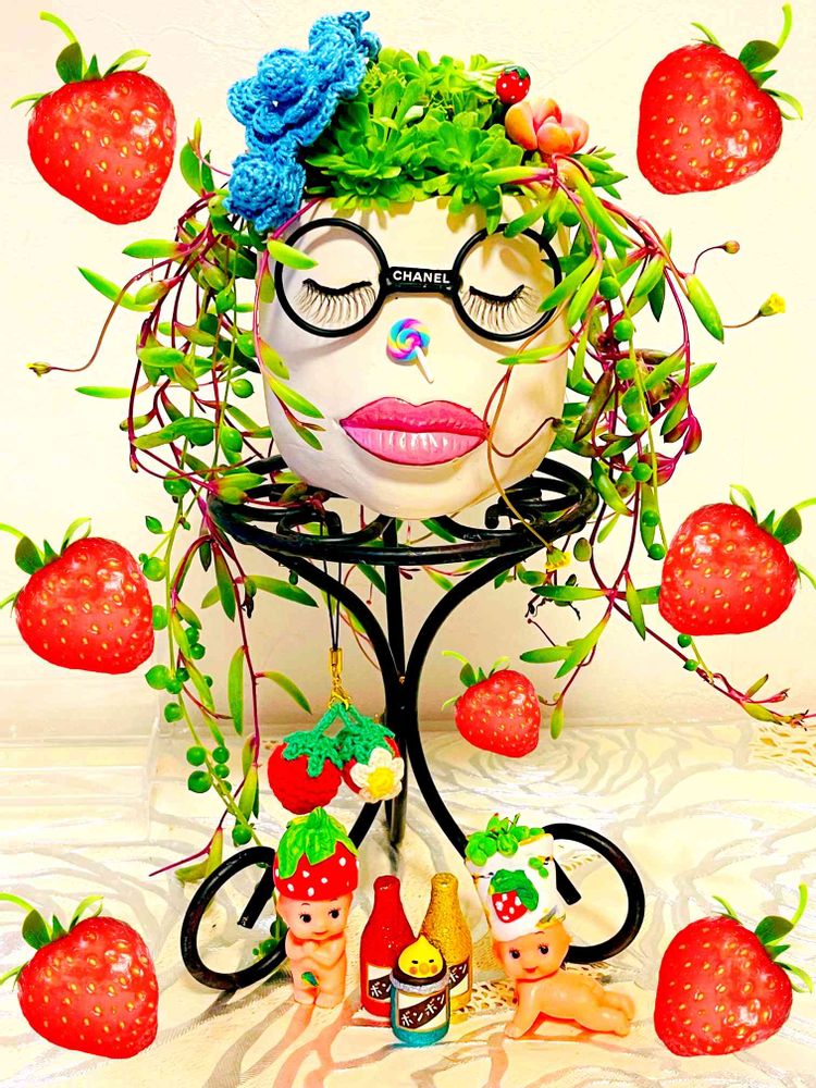 大きな💋に食べられちゃいそうで、🍓QPさんたちは目が合わないようにしています🤣