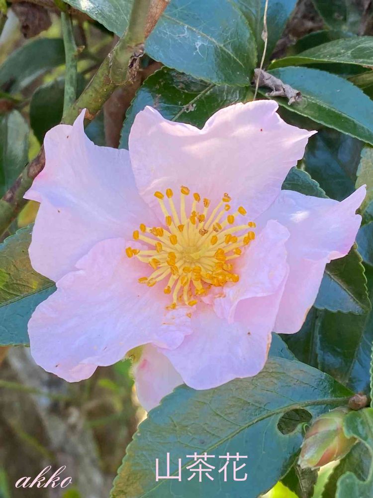 我が家の裏庭に咲いてきた山茶花は優しいピンクです💗