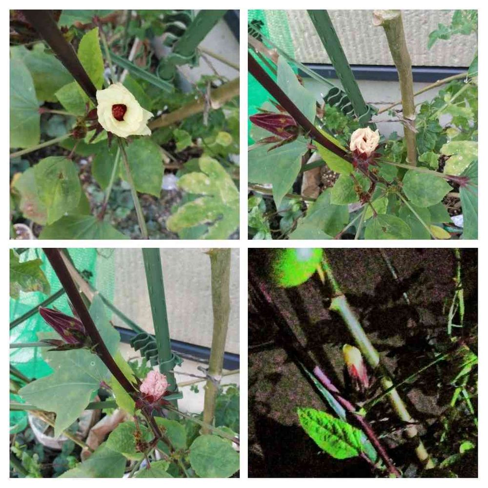 金曜のローゼルさんの蕾、お花を見逃さないように見てたけど