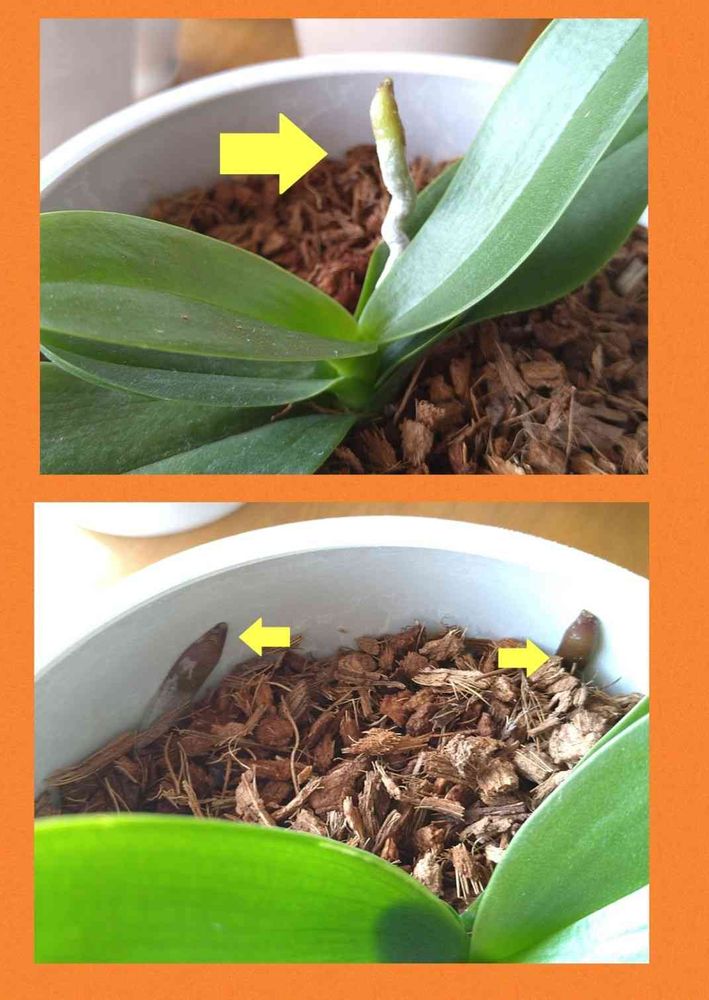 だから実はそのまま何もしなくて大丈夫なんですよ。それが本来の姿なので、胡蝶蘭にとっては快適な状態なのです。根っこが完全に見えている状態というのは、飾るうえで少し見栄えが気になるかもしれませんね。胡蝶蘭は花芽と根がとてもよく似ていて、初心者の方にはなかなか区別がつかないことがあります。出始めの頃は、色も似ていて判断が難しいらしいです😮